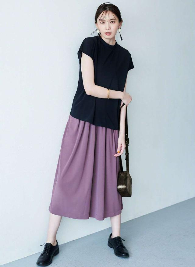 夏天怎么穿搭出优雅气质?黑色T恤+紫色半身裙 让你大方有魅力(3)