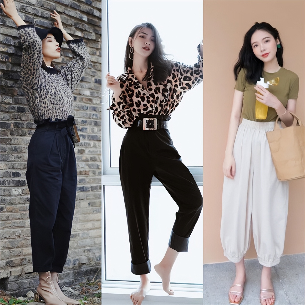 花苞裤虽然都是宽松的曲线型裤腿设计,但却有细微的版型差异。要想你的花苞裤更加显高显瘦,那就要选择右边这种裤脚最宽处在大腿附近的版型。