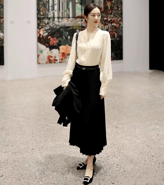 当与百褶裙相搭,也是让造型有着满满的时尚感。▼