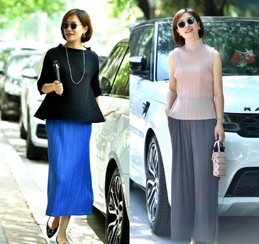 如果你是上半身比较胖的苹果型身材,那么可以考虑一下黑色的“麻花褶衫”,视觉上显瘦的效果极好,下半身搭配宝蓝色“麻花褶半身裙”,这样的组合时髦又有个性,丰富了中年女人的穿衣可能性。