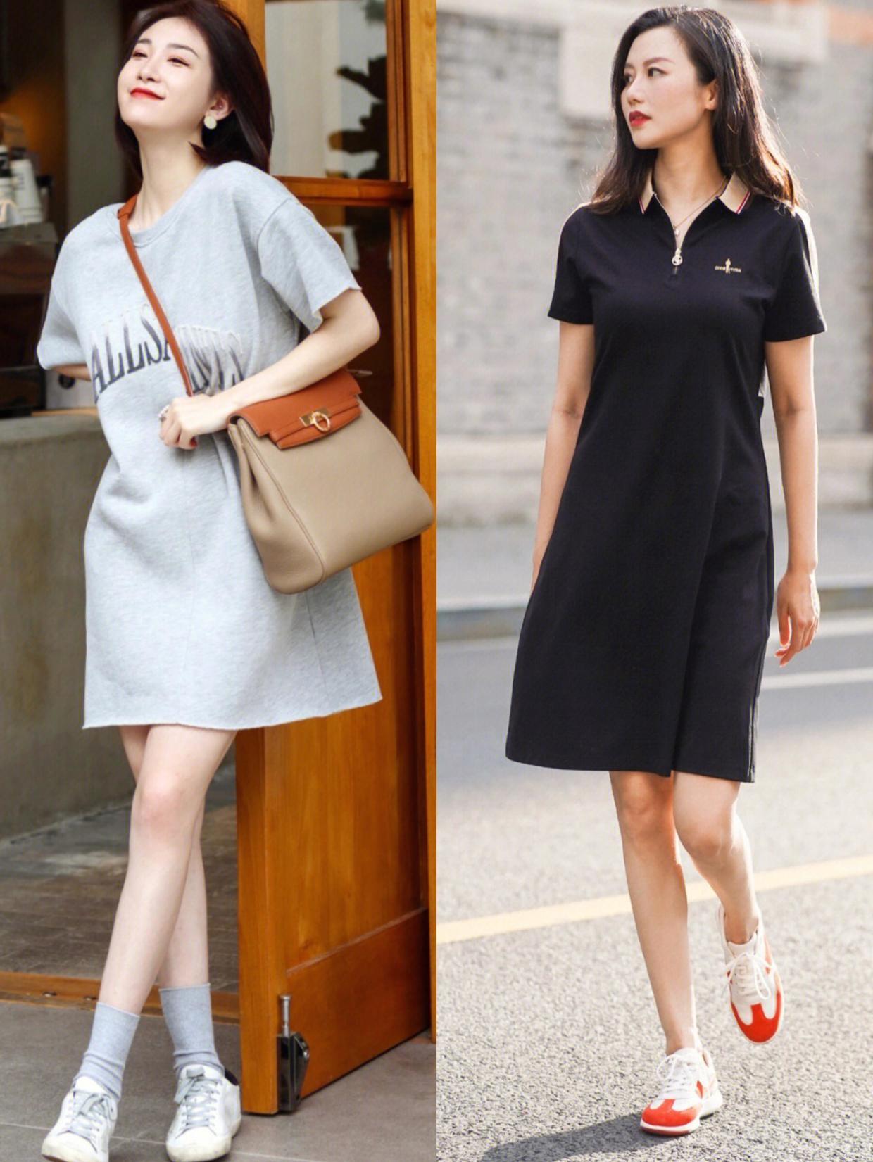 以连衣裙为例,选择一条基础色的款式便能很轻松的打造一身简约的造型,没有多余的颜色和复杂的样式,非常干净利落,十分耐看,相对宽松的版型也能带来清爽舒适的穿着体验,不过对于连衣裙来说,尽量选择收腰的设计,可以更好的将身材的曲线感衬托出来,彰显女性的优雅魅力。