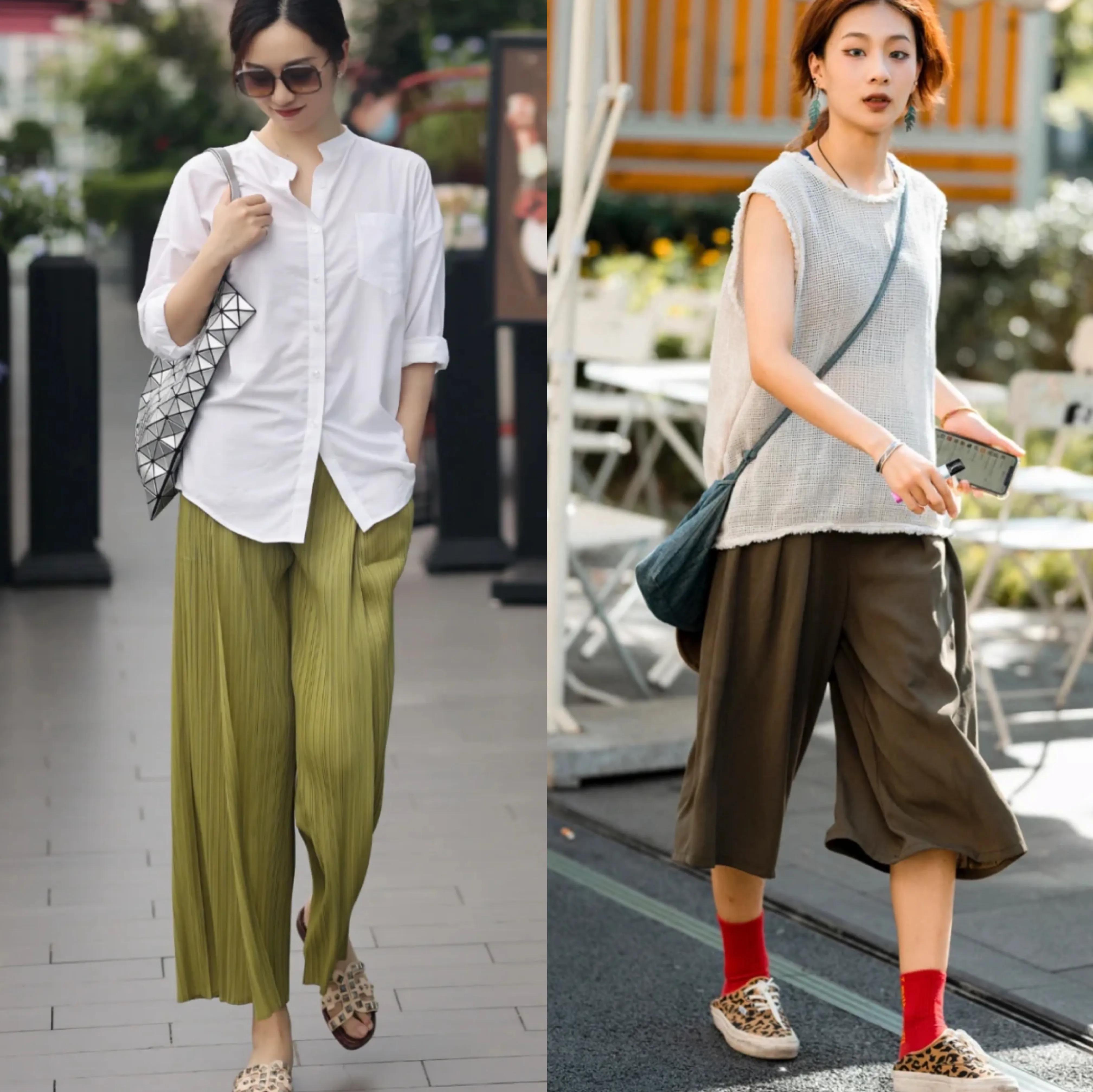 最喜欢纯白的颜色了,显白的同时还很百搭,这里与绿色的阔腿裤搭配在一起也很好看,特别清新,可盐可甜。