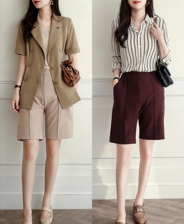 通勤穿搭中,身材的修饰至关重要,常见的技巧就是通过收腰或者高腰设计来达到扬长避短、遮肉显瘦显腿长的效果,凸显出职场女性的干练飒爽英姿。如高腰的百慕大短裤来修饰腿部比例,让上衣简单地塞进衣角,帮助女性穿出那份得体优雅,展现气质女人的不俗和无言魅力。