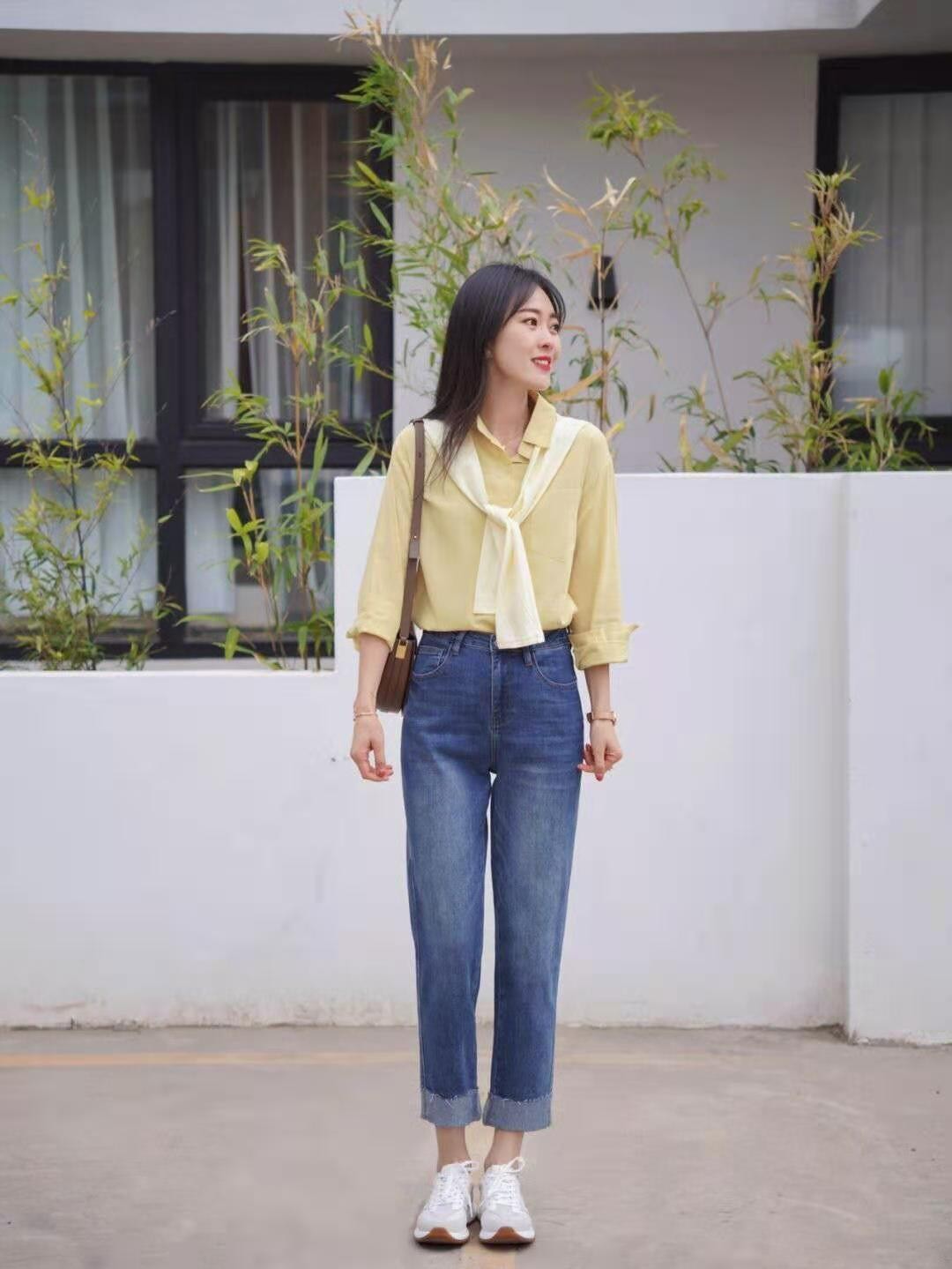 我们想要牛仔裤造型更时尚的话,首先要做的就是勇于尝试新颖的搭配方式,如“法式小衫+牛仔裤”,带有方领设计、收腰设计、泡泡袖设计的法式小衫,不但营造出“优雅、慵懒、浪漫”法式氛围感,还很有小女人味道,用它搭配牛仔裤,想不时尚都难。