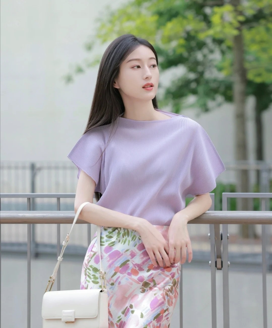 印花上衣可能会携带更高的挑战难度,但印花半身裙则不太一样,它会对肤色没有要求,主要需要女性认真考虑上衣应该如何选用,如何搭配。