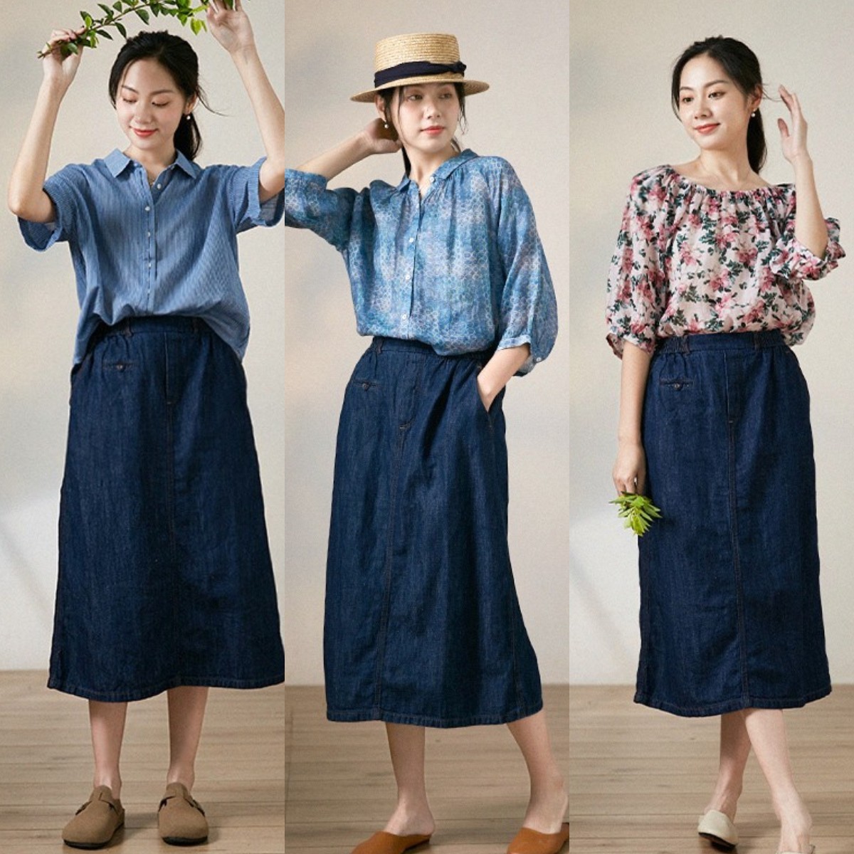 但要想让你的夏季穿搭看起来更加清爽透气,可以试试下图中这种质感柔软一些的天丝牛仔裙。更能满足透气感的需求,同时还能增添高级质感,让你的搭配更显成熟,40岁的女人可千万别错过。