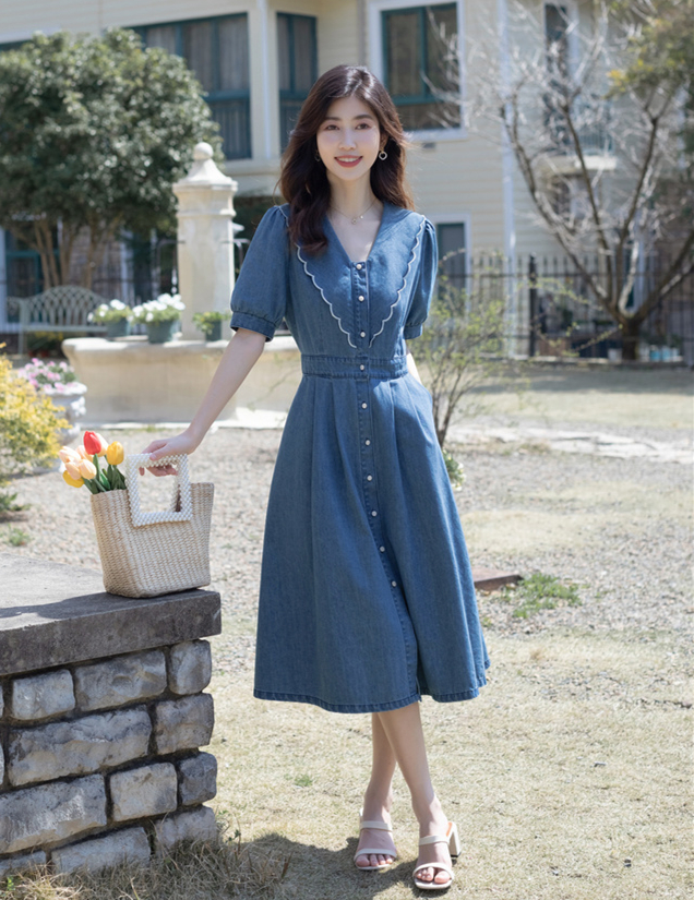 ”的短袖牛仔连衣裙。加大上半身的透气感,同时降低牛仔连衣裙过于沉闷的气息,能让你的搭配看起来更有夏日氛围感。