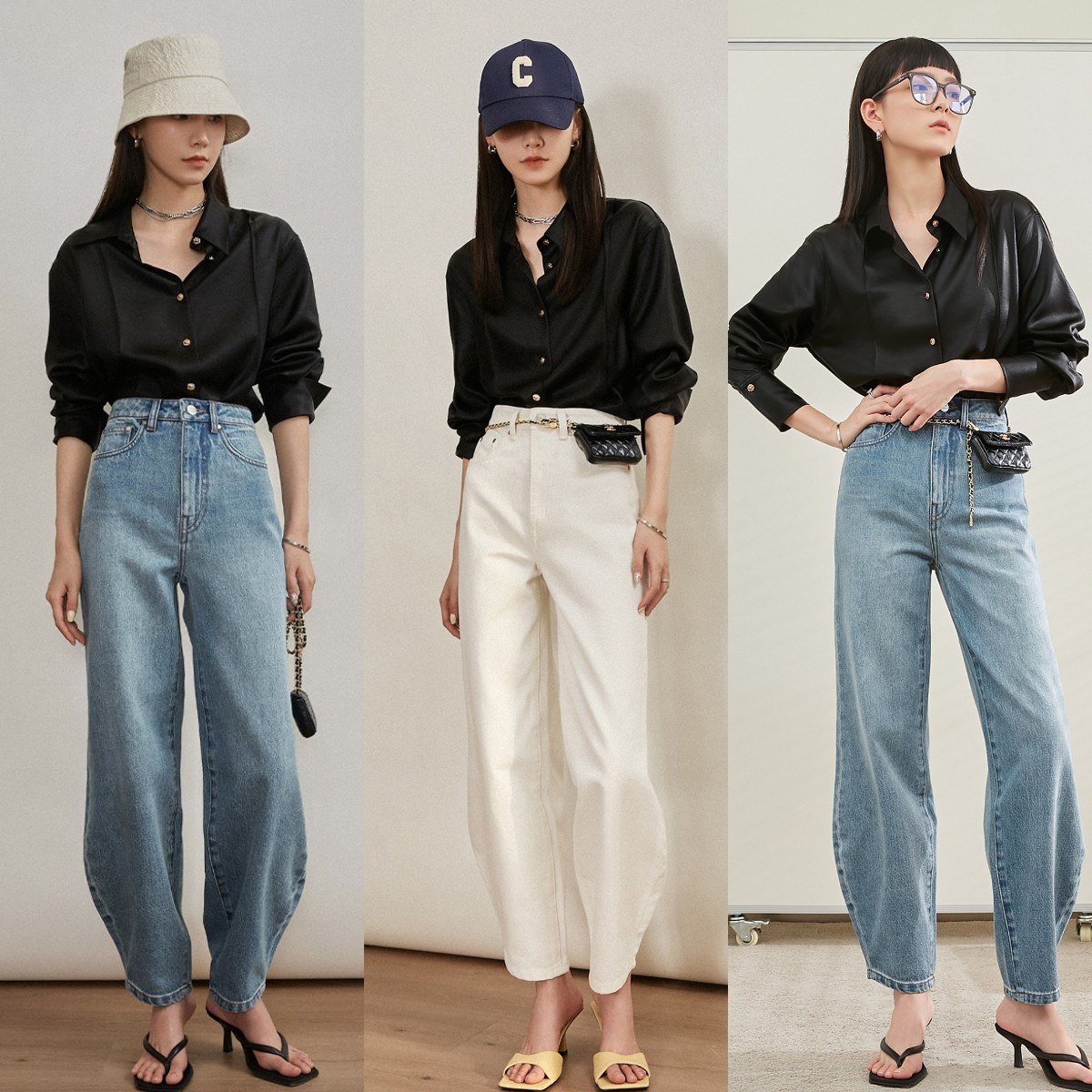 除此之外,在牛仔阔腿裤的设计感上我们也得多加注意。要想穿出更加高级时髦的风格,建议大家试试下图中的这种选用了“茧蛹形”裤型的牛仔阔腿裤,加强裤腿的立体感与设计感,既能降低撞衫率,又能很好地修饰腿型,不管你是腿粗还是腿型不直都能轻松驾驭!
