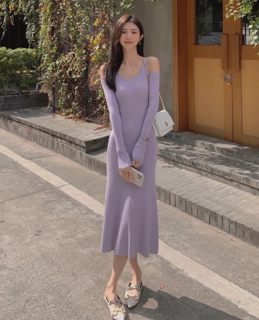 紫色是让人又爱又恨的色彩,爱的它那高贵不可攀的贵气,上身就突出贵妇气质;恨的也是它那贵气,普通人难以驾驭。但是香芋紫就不同了,它在本紫色的基础上融入了灰调,摇身一变从天上落入凡间,沾染上了烟火气,透着几分温柔舒缓的典雅感,让人能轻松驾驭。并且香芋紫裙对黄黑皮和冷白皮都很友好,能轻松凹出时髦造型。