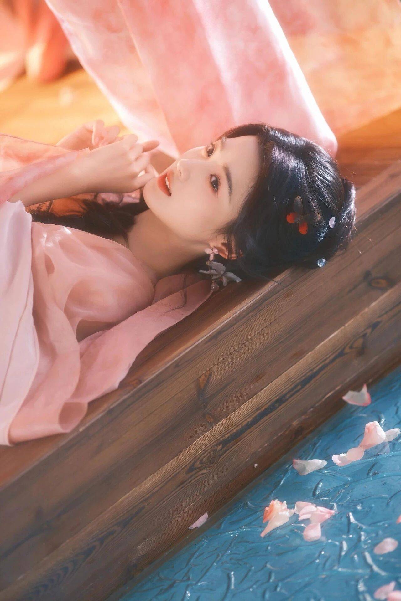 卢昱晓的粉色写真,这样的她也太妖娆了吧!