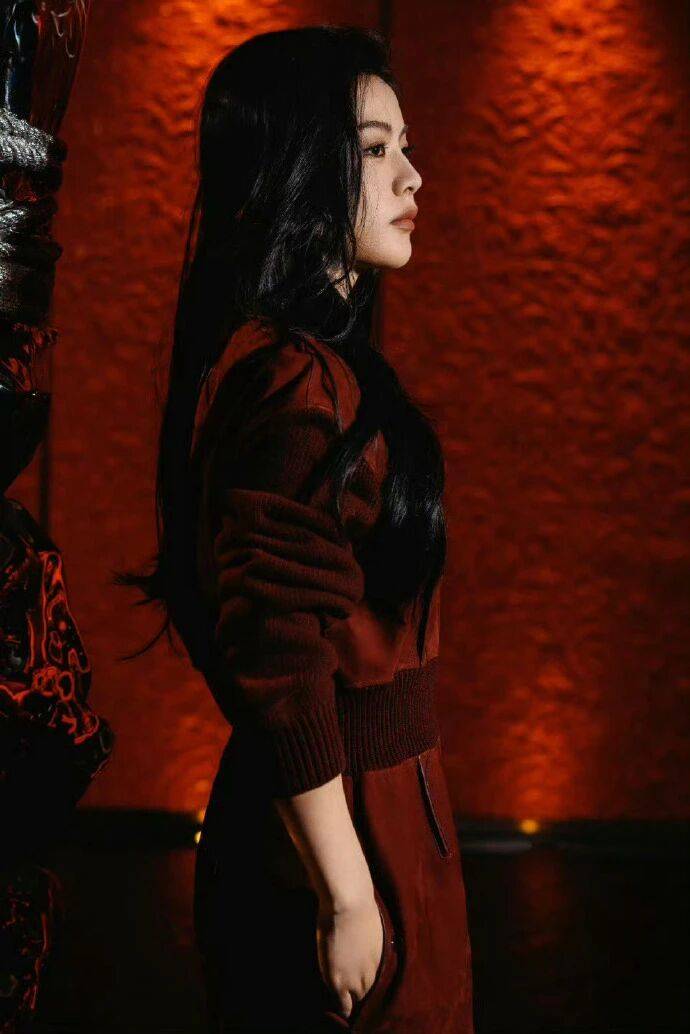 爱马仕的利落最怕 “硬成壳”,她靠材质柔糙对冲破了局 ——麂皮裙的柔碰长靴的糙(靴面的纹理是 “糙的利”),柔的软裹着糙的硬,利落是 “撑起来的” 不是 “绷出来的”;没有秀场的夸张手套,用裙装的垂坠衬出腿线,越剧的挺拔身形刚好撑住 “柔糙的利”,不僵不软。