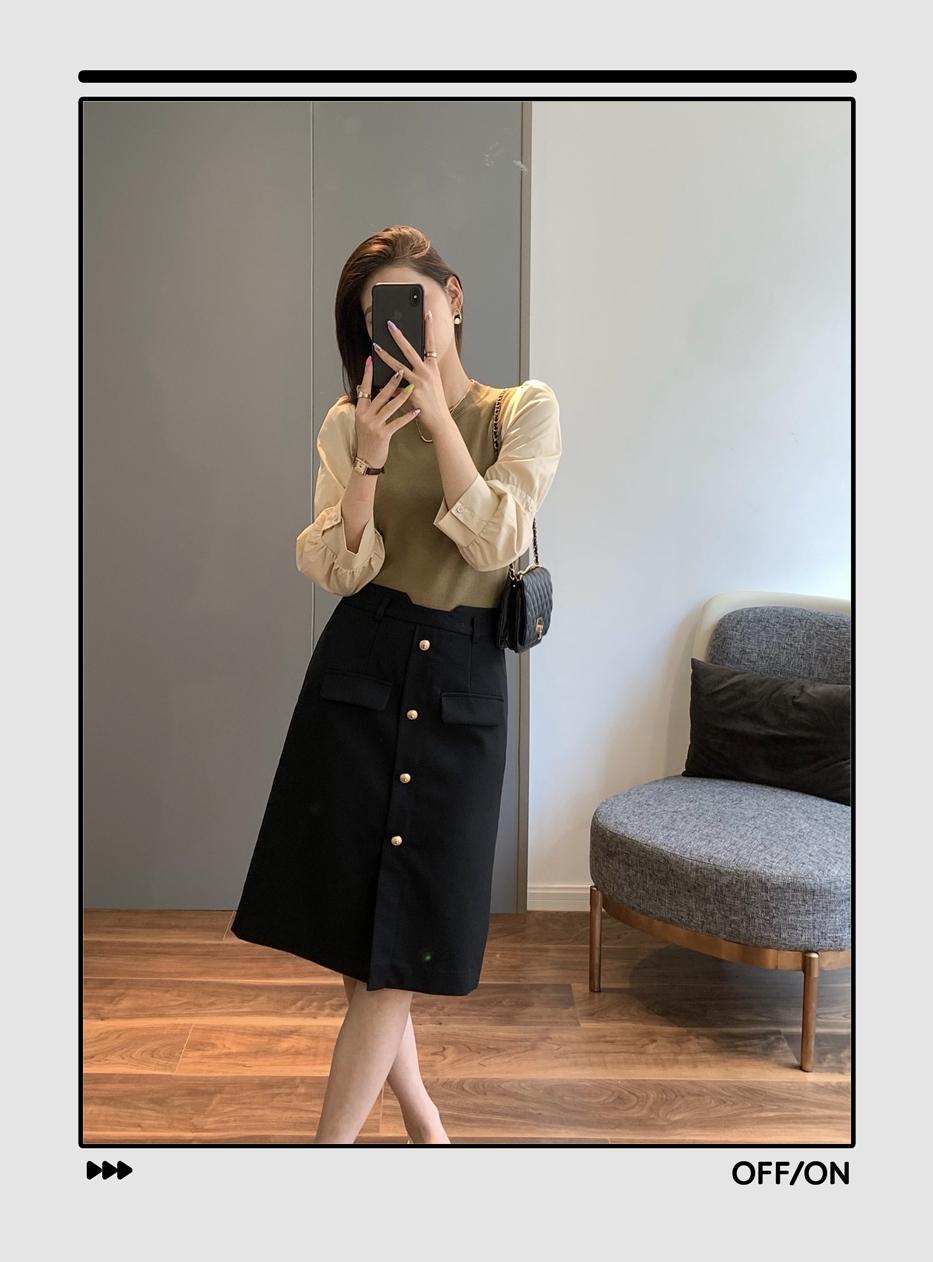 上身搭配一件卡其色的小衫,搭配这条黑色A字半身裙,衣服塞进裙摆里,整个人都会变得更干练。