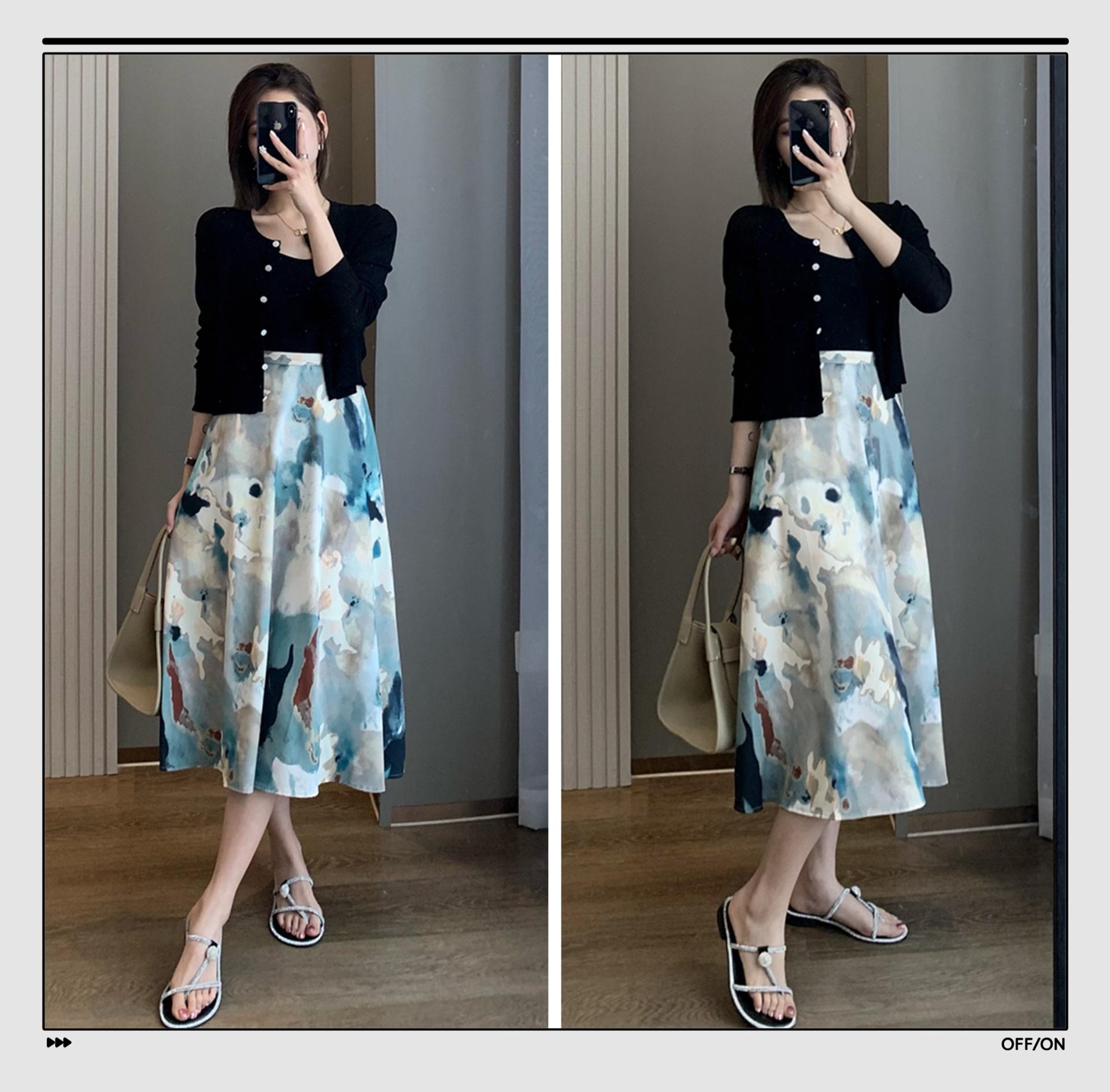 哪个女生不喜欢印花单品呢?所以夏天没有穿够印花裙立秋了我们继续穿。这是一条美得像幅画的半身裙。
