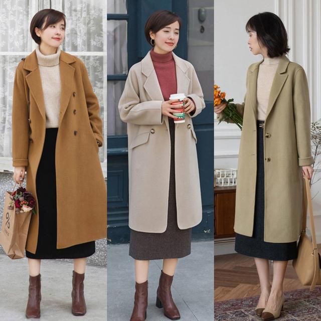 除了黑白灰,米色、卡其色、驼色、咖啡色、褐色这一类大地色系的出场率也非常高。这种颜色的大衣风格十分知性温婉,能强调出自己的高级大方气质感,适合成熟女性!
