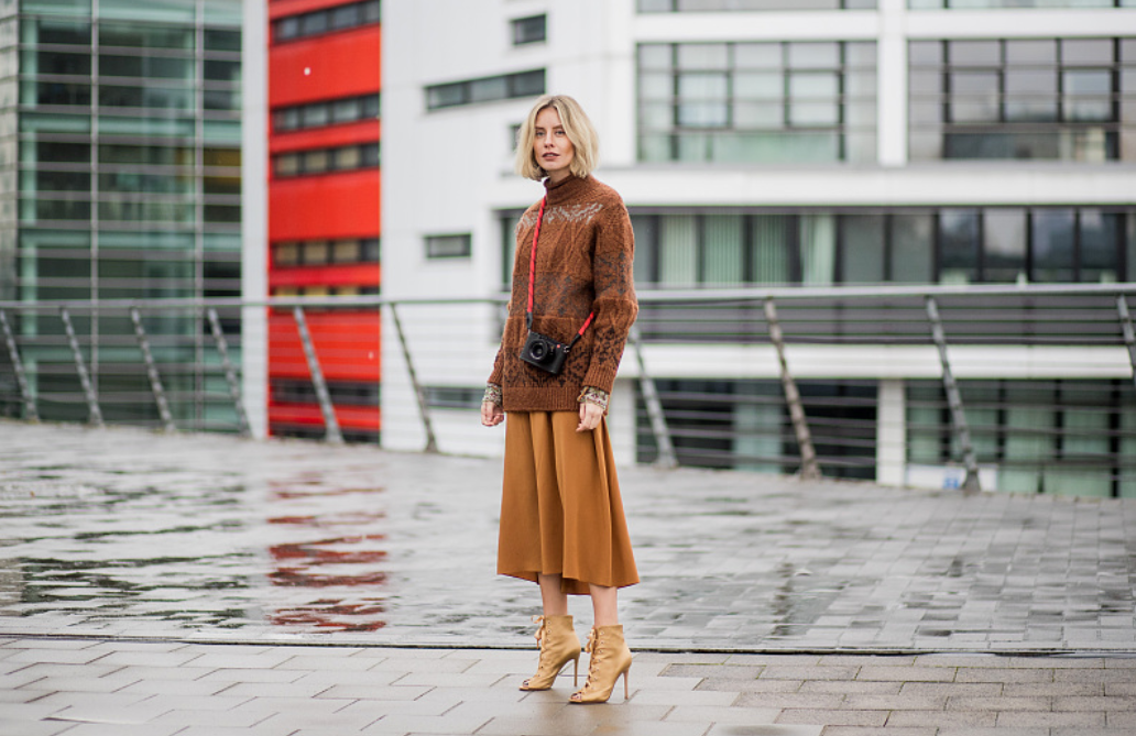 毛衣+半身裙该怎么选择 针对毛衣 现在毛衣的款式有很多种,长度上 短款、常规款以及中长款 ,版型上分 修身、微宽松以及oversized 款式,其中偏矮的姐妹选择短款或者长款,微胖星选择微宽松或者廓形,都能起到很好