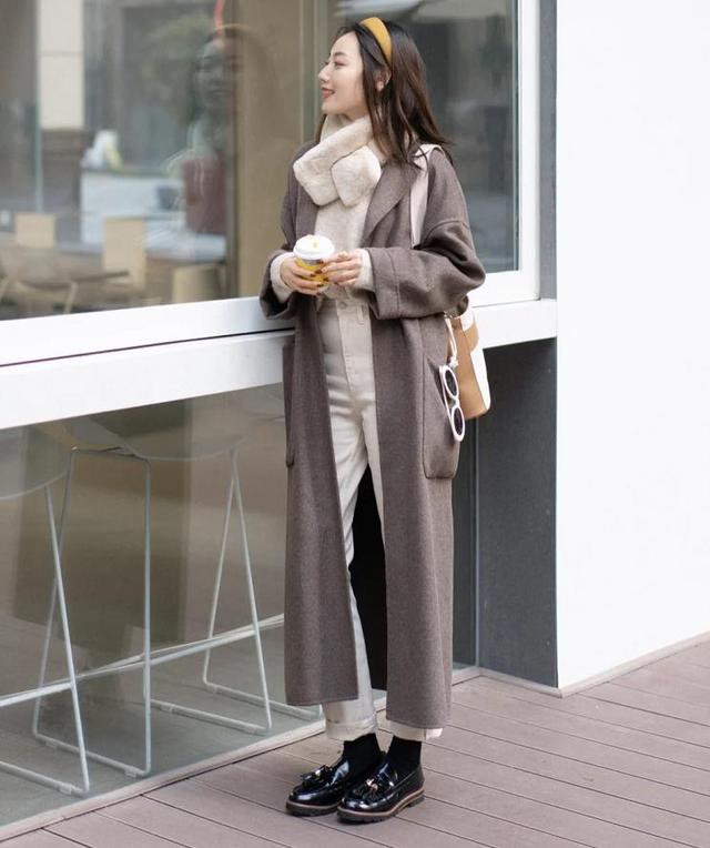 要说小个子女生适合选择什么版型的长大衣,Lily觉得像这种H版型的就非常不错,至少能在视觉上给人一种身形比例修长、显瘦的效果。