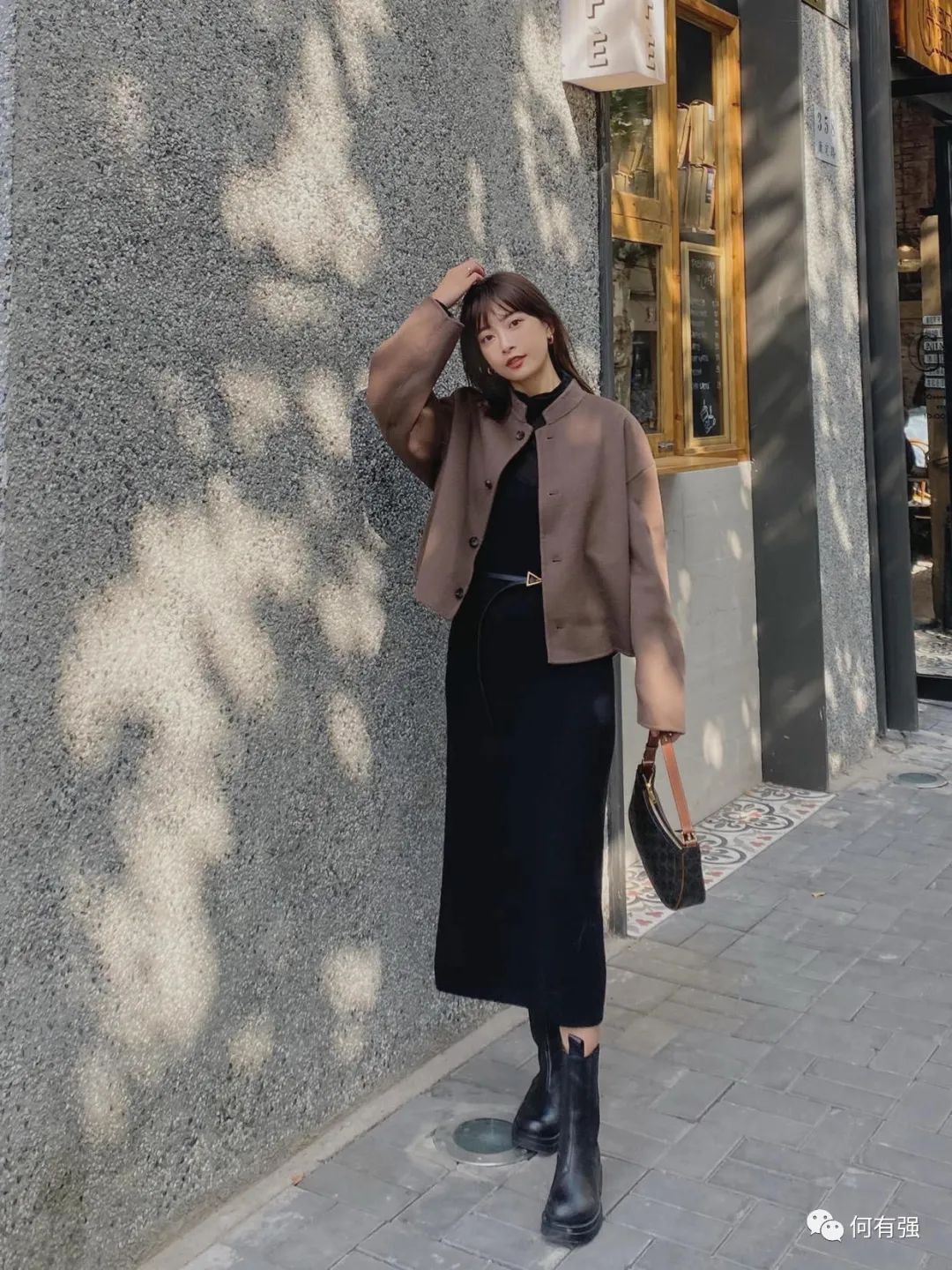 棕色是一种极其温柔的色彩,它能够给我们带来相当低调的气息,但如果你在短外套中加入了立领的造型,则会让你整个人的气场瞬间提升,呈现出更加霸气的一面。而且还融入了茧型设计,这样即便是选择短外套,也能够让你的身材得到很好的修饰,尤其是对肩部的线条的调整很有帮助,并不会让你整个人显得很魁梧。