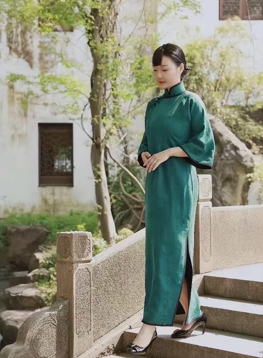 悦动的裙摆,是光影交织的闪耀,区别于创新改良过的,我更喜欢旗袍原本的样子,老样式的做工里藏着年华。当乌绿色运用在旗袍上,有一种难得深沉的清雅感。宽松到隐藏了体态的长宽旗袍,倒是与简约的尖头高跟鞋相融恰宜。