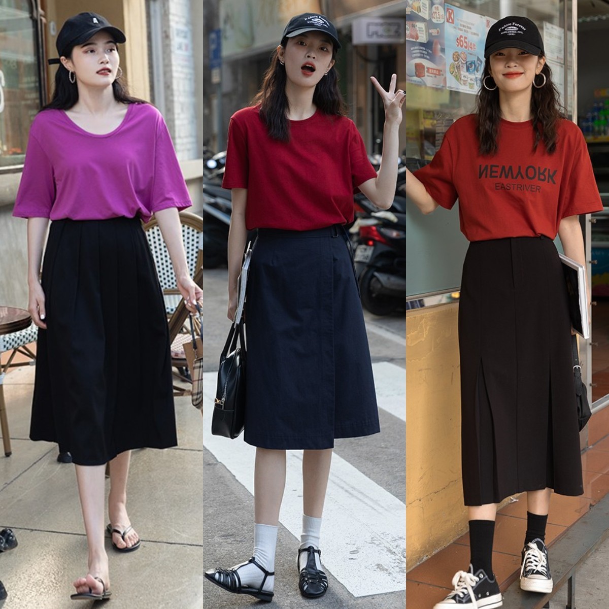 思路3、T恤+A字裙