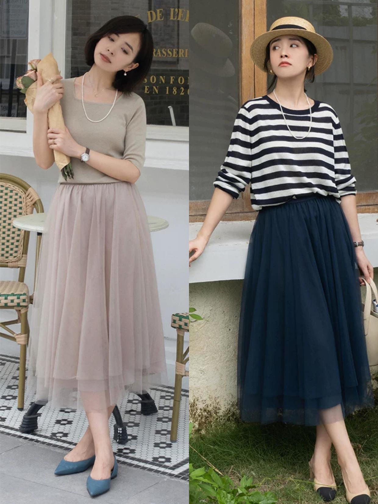 薄纱半身裙是最灵动的款式,特别适合早春季节。层叠薄纱本身就伴随着朦胧浪漫的美感,特别有飘飘欲仙的女人味,如果你入手了一款薄纱半身裙,那么就能看起来减龄10岁不止。在搭配时,要注意整体风格的协调性,如果选择燕麦色的针织衫,就搭配裸粉色的半裙,穿蓝白条纹针织衫的话,就入手藏蓝色半裙,这样才能提升协调性,和谐又自然。