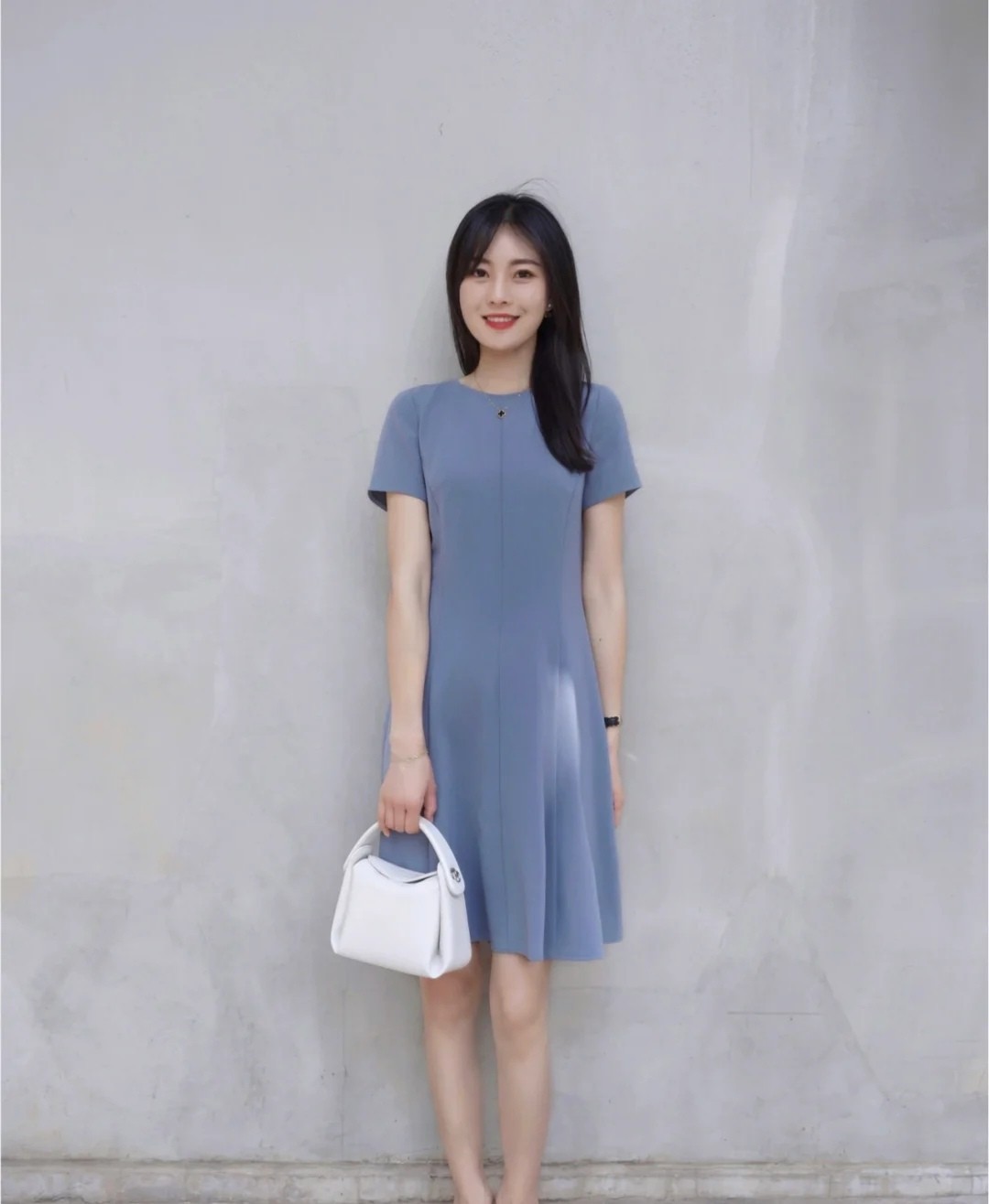 像这款简约的蓝色裙装,它能让女性穿着去上班,打造出特别知性的氛围,这款裙子的轮廓构造没那么宽松,对身材的要求并不高,裸露出清晰的小腿曲线,也很显高。