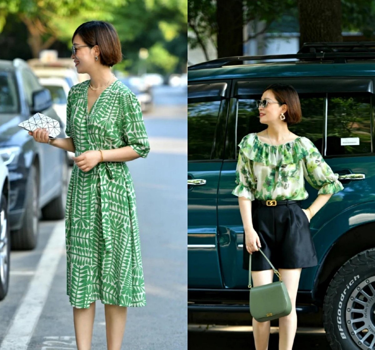 绿色的印花单品,先以印花衬衫为例,可以选择绿白相间的色系,加入清新而又干净的氛围。搭配最简洁的黑色短裤,也很大方,还特别的凉爽。