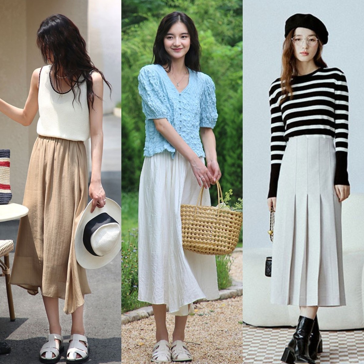 对于很多小个子女生以及腿短的类型来说,长裙自然比短裙更加具备优势。因为长裙自带垂坠感,而且可以很好的延伸腿部线条,不管你是五五分还是小短腿,都能够轻松穿出大长腿。半身裙的长度选择也要很慎重,为了避开压身高的情况,长度一定要控制在“小腿中部上下”的位置。